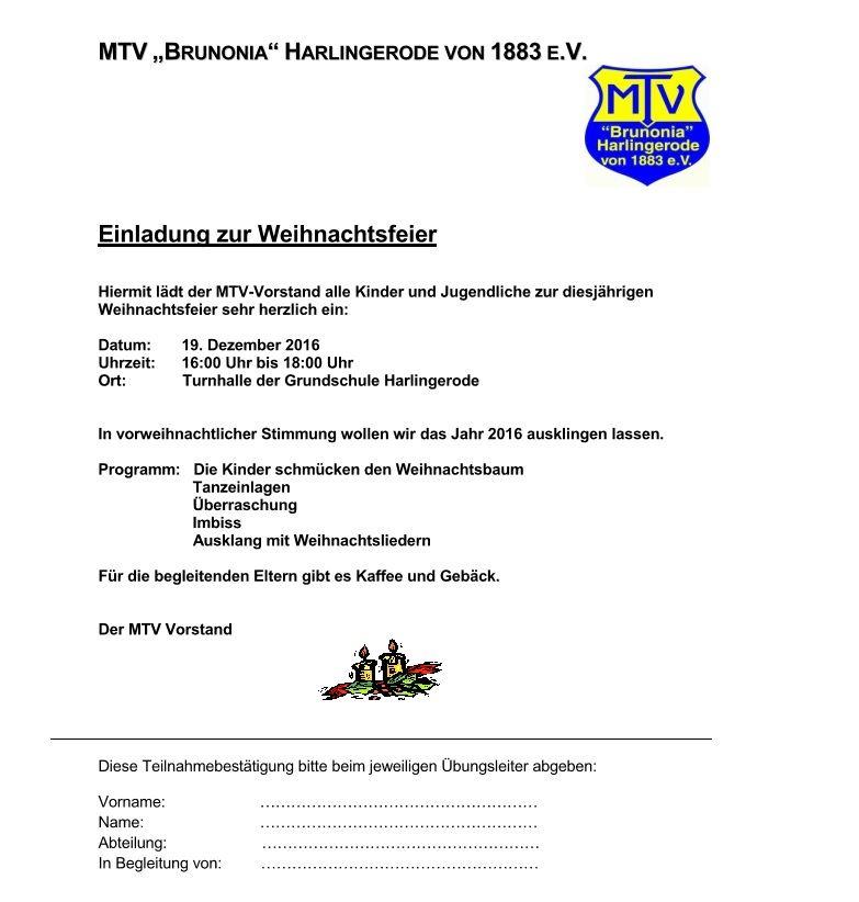 Hiermit lädt der MTV-Vorstand alle Kinder und Jugendliche zur diesjährigen Weihnachtsfeier sehr herzlich ein: