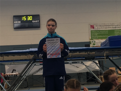 In der AK 8 kam die 6-jährige Ayleen Rau mit der drittbesten Wertung in das Finale. Leider hielt sie hier ihre Übung nicht durch und landete dann auf dem 6. Platz. Lilly Mellin belegte in der AK 14 den undankbaren vierten Platz. Um nur 0,3 Punkte verfehlte Nourienne Bellhaj ganz knapp den Sieg in der AK 10. Die Silbermedaille ist dennoch ein Riesenerfolg für sie.
