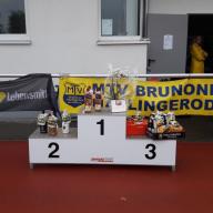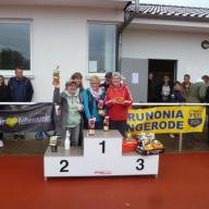 15 Teams mit den teils illustren Namen sind dem Aufruf der Brunonen gefolgt, den Dorfmeister zu erboßeln. Sieben Kilometer lang ging es daher durch die Feldmark, vom Leichtathletikzentrum am Hurlebach vorbei und unter die Bundesstraße hindurch. Auf halber Strecke wartete auf die 95 Teilnehmer eine Verpflegungsstation – falls nötig. Denn die meisten Teams zogen ihr eigenes Wägelchen hinter sich her, gefüllt mit Regenkleidung, Musikanlage und der einen oder anderen Stärkung für Körper, Geist und Seele. Das Ziel war dann wieder der Harlingeröder Sportplatz, wo MTV-Vorsitzender Gerhard Marth mit der Siegerehrung wartete. Bei den Damen holten sich die „Step Queens“ (122 Würfe) den ersten Platz, bei den Herren waren es die „PUR-Senioren“ (116 Würfe). Bei den Mix-Mannschaften belegte das vom Turniersponsor aufgestellte „E-Center Bergmann Team II“ (131 Würfe) den ersten Platz.