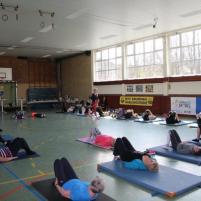 Die neue Übungsleiterin Claudia Silbe von Czapiewski konnte die Teilnehmerinnen gut motivieren. "Pilates ist ausgeklügelt und macht lange geschmeidige Muskeln. Wenn ihr zehn Stunden mitmacht, seid ihr ein anderer Mensch." Für Jumping Fitness sorgten Rebecca Bock und Patricia Rehr. Mit Annette Pelz zogen die Walkerinnen los. Zirkeltraining mit Anja Damköhler, Step Aerobic mit Heike Kummer und Bauch-Beine-Po-Gymnastik mit Iris Stützer-Bock komplettierten das Gesamtpaket. Im Vorfeld hatten die Teilnehmerinnen ihr Wunschprogramm zusammenstellen können. Je 45 Minuten dauerte eine Sporteinheit. 15 Minuten Pause lagen jeweils dazwischen, um sich auszuruhen oder um genug Zeit zu haben, den Standort zum nächsten Angebot zu wechseln.