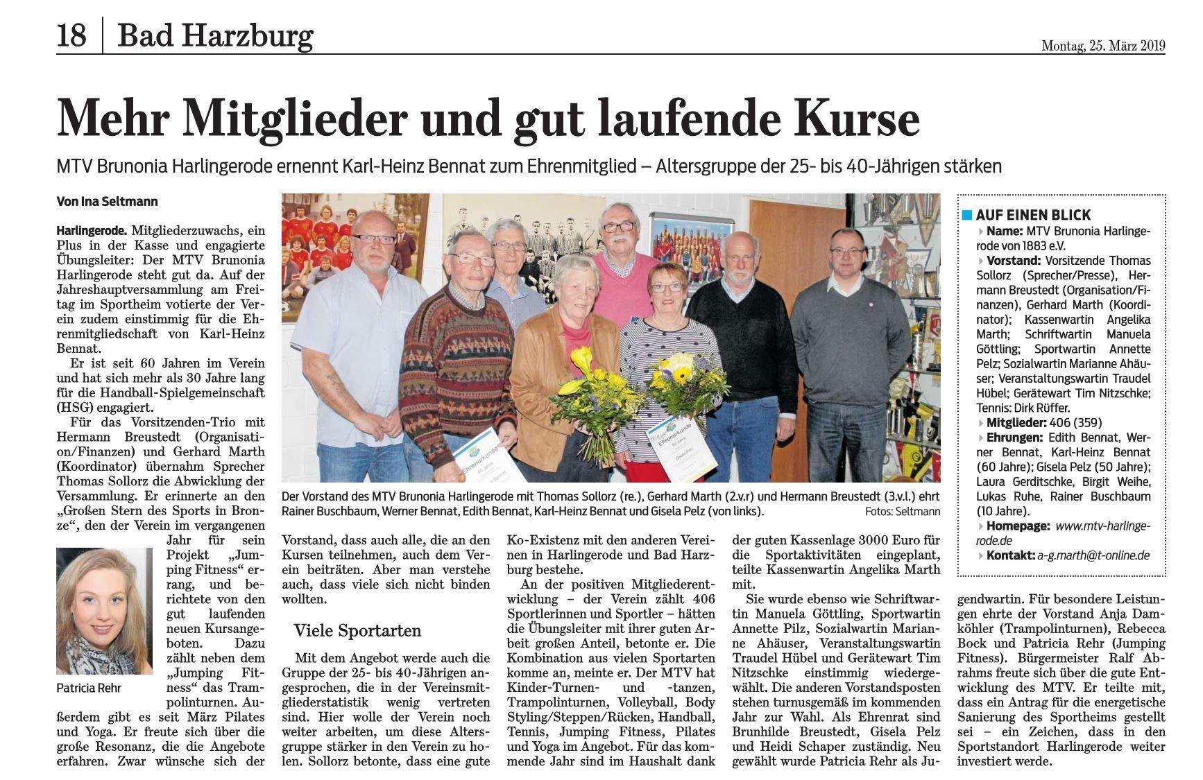 Sie sind hier: MTV Brunonia Harlingerode » Archiv » 2019 » JHV 2019