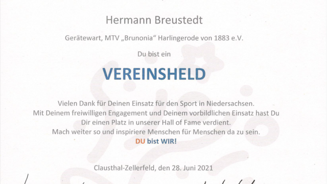 Hermann Breustedt ist ein Vereinsvorsitzender und übernimmt zusätzlich die Aufgaben des Gerätewartes. Durch sein handwerkliches Geschick und sein pragmatisches Vorgehen hat er dem MTV in den letzten Jahren viel Geld