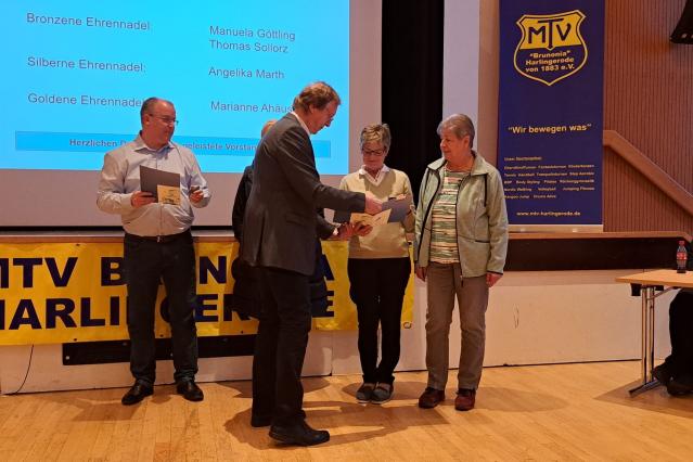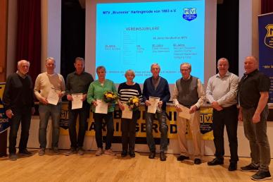 Für langjährige Vorstandsarbeit zeichnete der Vorsitzende des Kreissportbundes Goslar, Volker Bäcker, im Namen des Landessportbundes Marianne Ahäuser (goldene Ehrennadel), Manuela Göttling und Angelika Marth (silberne Ehrennadel) sowie Thomas Sollorz (bronzene Ehrennadel) aus. Hermann Breustedt, der unter anderem acht Jahre lang den Vorsitz im MTV Brunonia inne hatte, wurde zum Ehrenmitglied ernannt. Er gehört dem Verein ebenso seit 60 Jahren an wie Joachim Fischer, Werner Hackmann und Wolfgang Opitz. Dieter Hunstock und Jörg Opfermann sind seit 50 Jahren dabei, Brigitte Klüttig und Christel Zein seit 25 Jahren.red